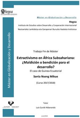 EXTRACTIVISMO EN ÁFRICA SUBSAHARIANA ¿MALDICIÓN O BENDICIÓN PARA EL DESARROLLO?: EL CASO DE GUINEA ECUATORIAL