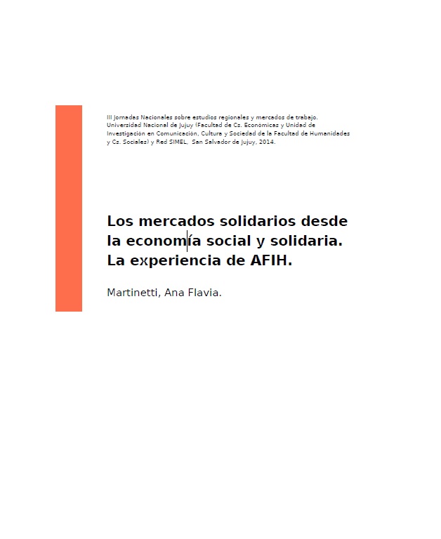 Los mercados solidarios desde la economía social y solidaria. La experiencia de AFIH
