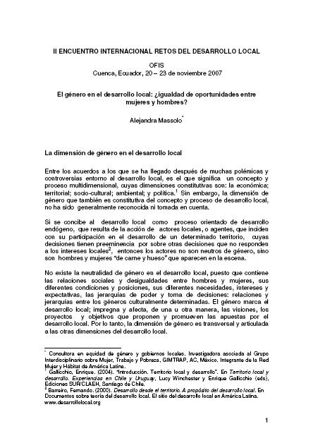 ll Encuentro Internacional Retos del Desarrollo Local. Cuenca, Ecuador, 20 – 23 de noviembre 2007.